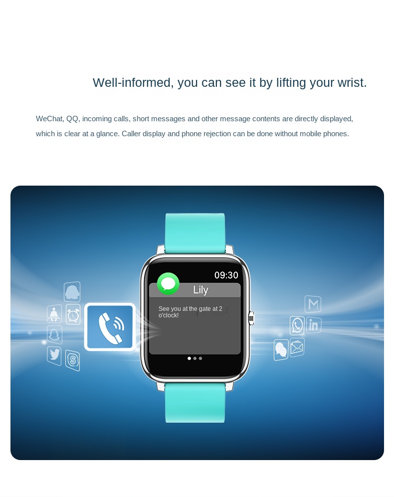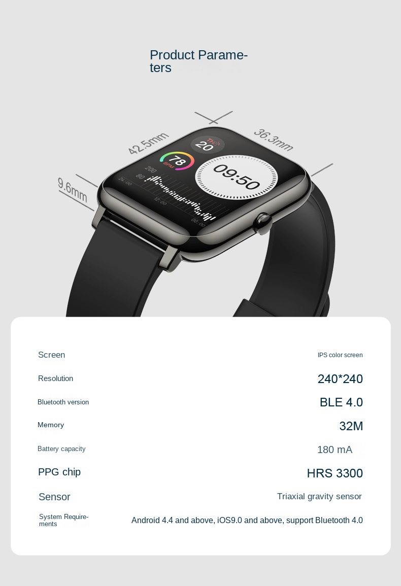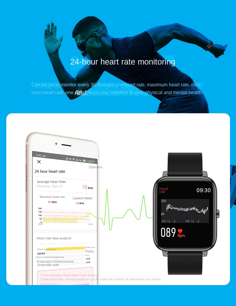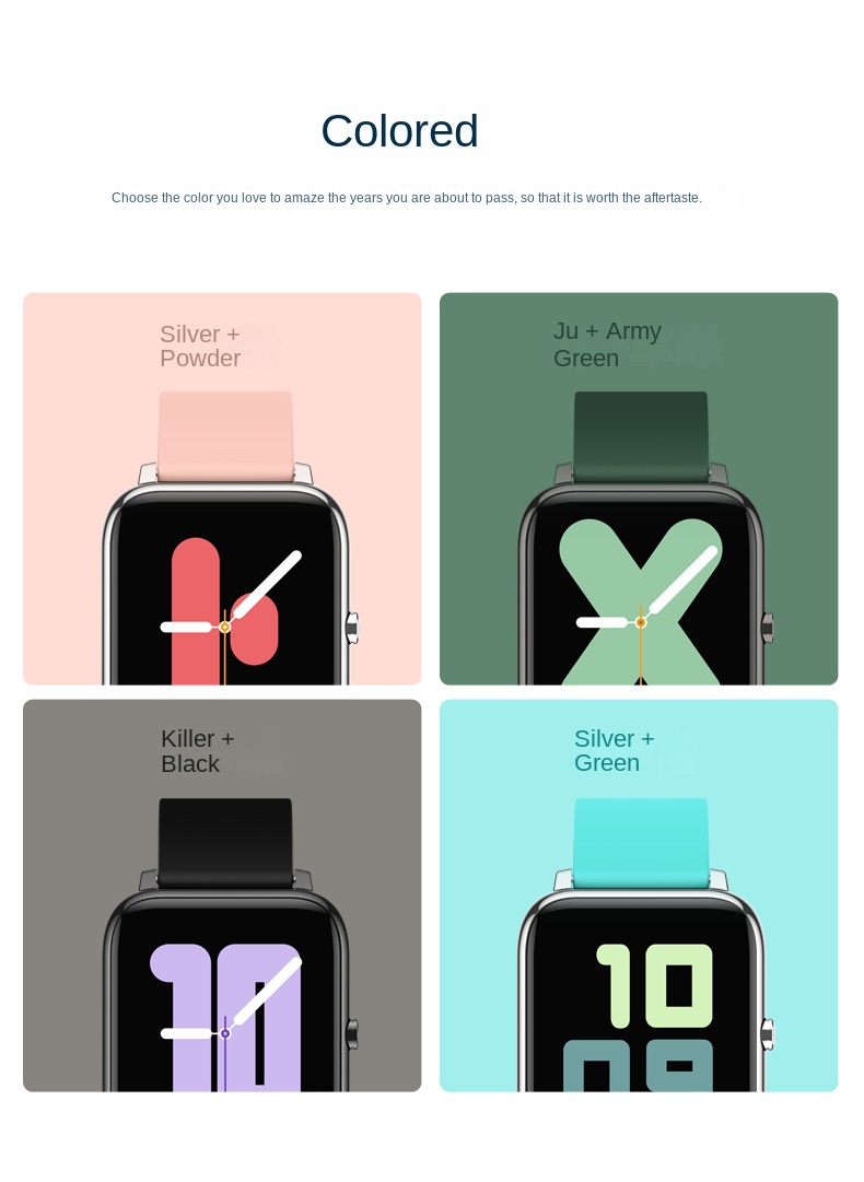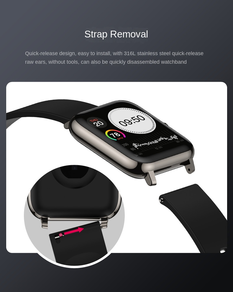 Smart Square Watch with Heart Rate, Blood Oxygen & Sleep Monitoring - Bluetooth Fitness Tracker for Sports